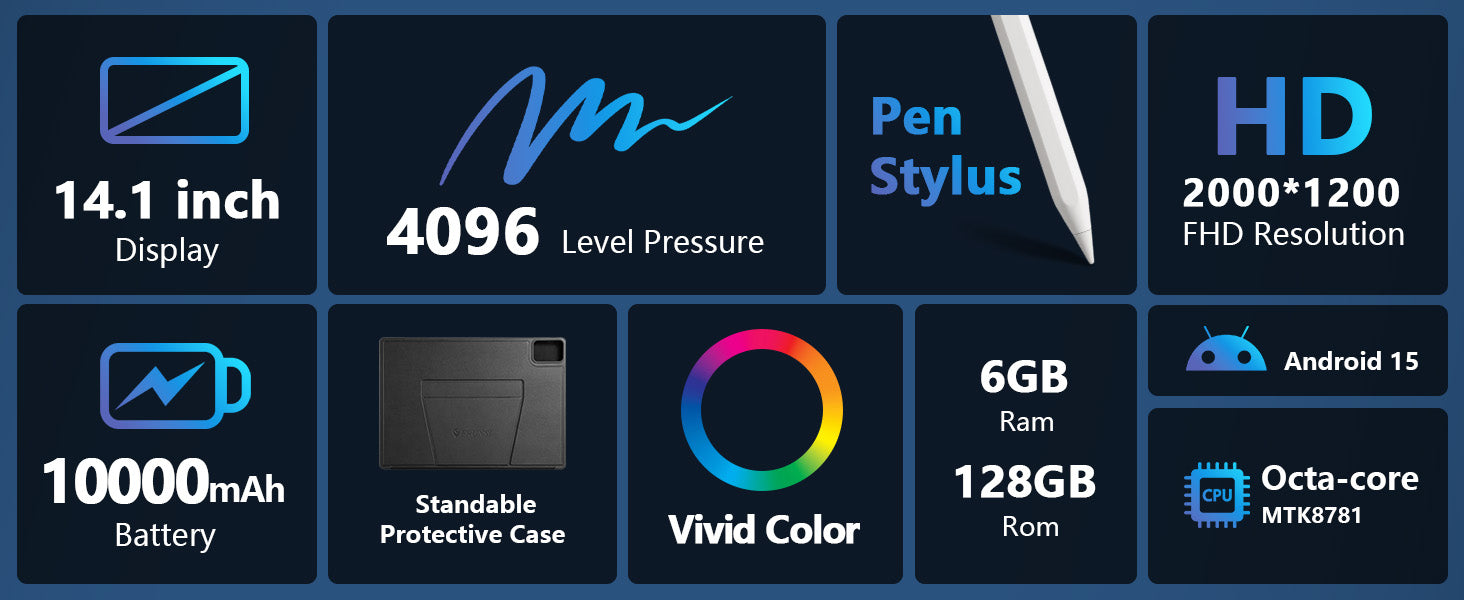 • Vibrant 12-inch 2K Display – 2000×1200 resolution for stunning visual clarity